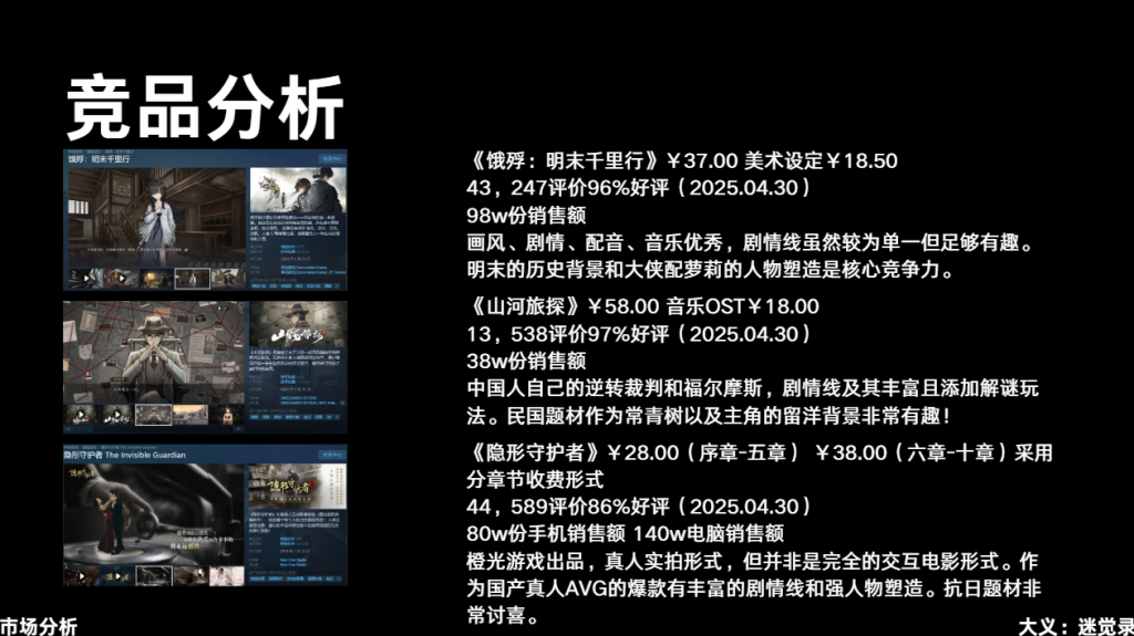 The review of the same ancient Chinese style AVG game Hungry: A Thousand Miles in the End of Ming Dynasty ranked fourth, AVG+RPG Legend of the Living Warrior ranked fifth, and AVG+Declassification game Mountain River Traveling Explorer ranked tenth. It proves that AVG games are hot in the current Chinese market.
