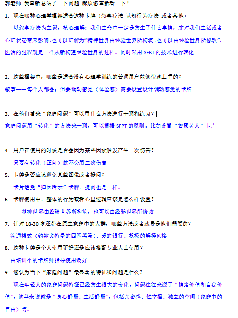A1:Centered on narrative therapy, the core understanding is: events in our lives inevitably shape our experiences and psychological states. This can also be interpreted as “our mental world is constructed by our experiential world and can be modified by it.” The healing process involves reconstructing this experiential world. Simultaneously, SFBT techniques are employed to facilitate transformation.